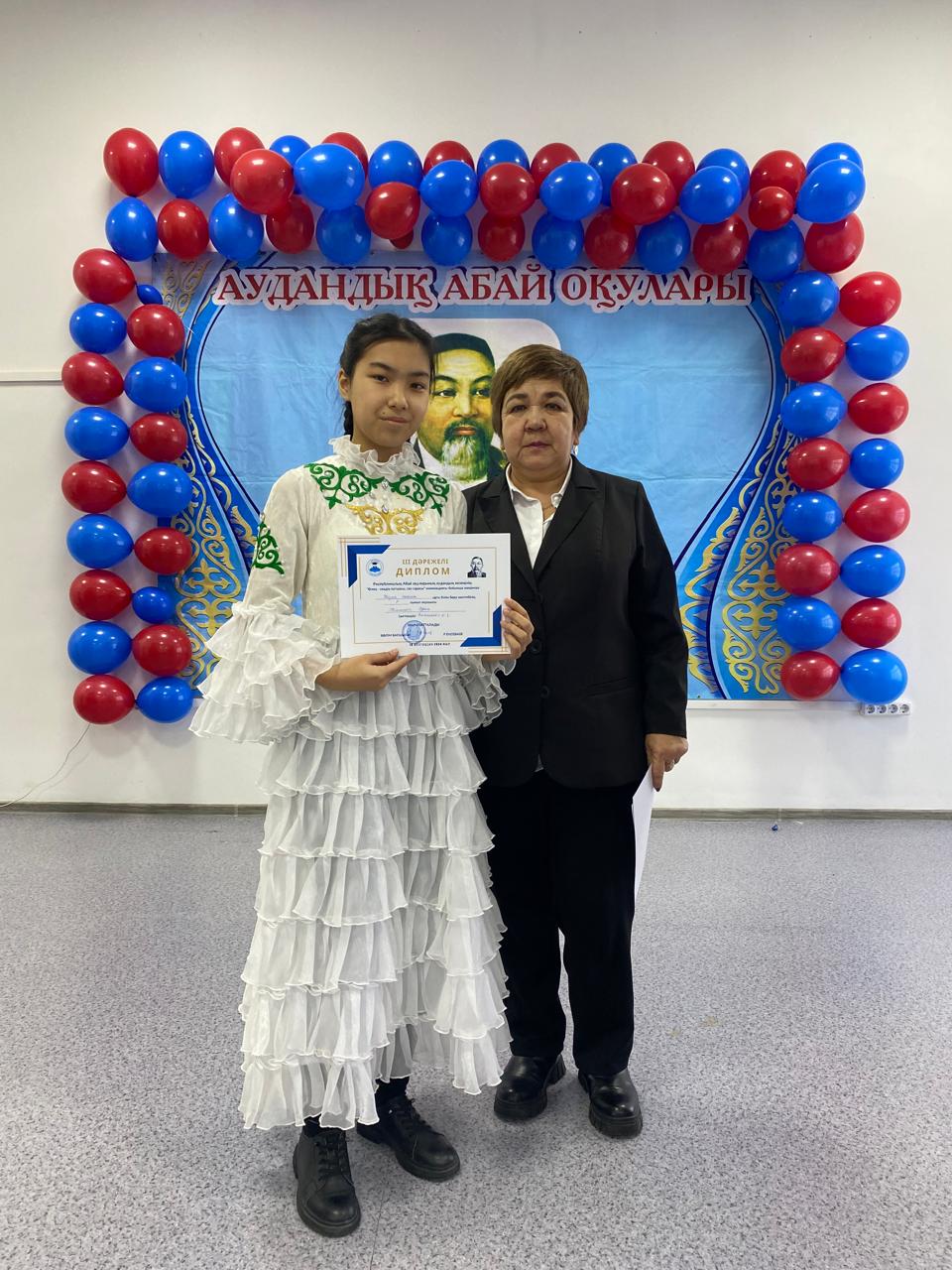 2024 жылы 8-сынып оқушысы Жамсап Әдия республикалық Абай оқуларының аудандық кезеңінде «Өлең – сөздің патшасы, сөз сарасы» номинациясы бойынша 3-орын иеленді. Жетекшісі: қазақ тілі мен әдебиеті пәнінің мұғалімі С.О.Зилькенов.