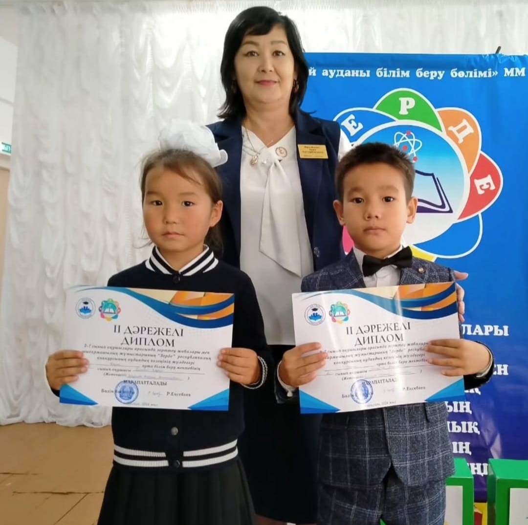 2-сынып оқушылары Серікбай Каусар, Берикбаев Алинур  2024 жылы жалпы білім беретін пәндер бойынша 2-7 сынып оқушылары арасында зерттеу жобалары мен шығармашылық жұмастарының «Зерде» республикалық конкурсының аудандық  кезеңінде 2-орын иеленді. Жетекшісі бастауыш сынып мұғалімі М.Д.Оразбаева.